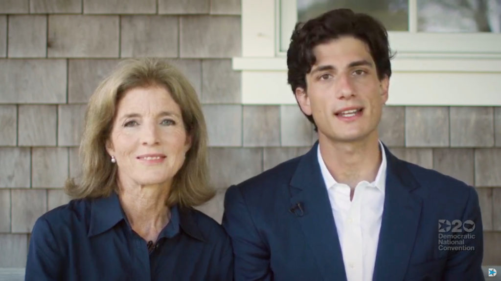 She appeared in a video speaking alongside her son Jack Schlossberg as they attempted to bridge a generational span across the party.